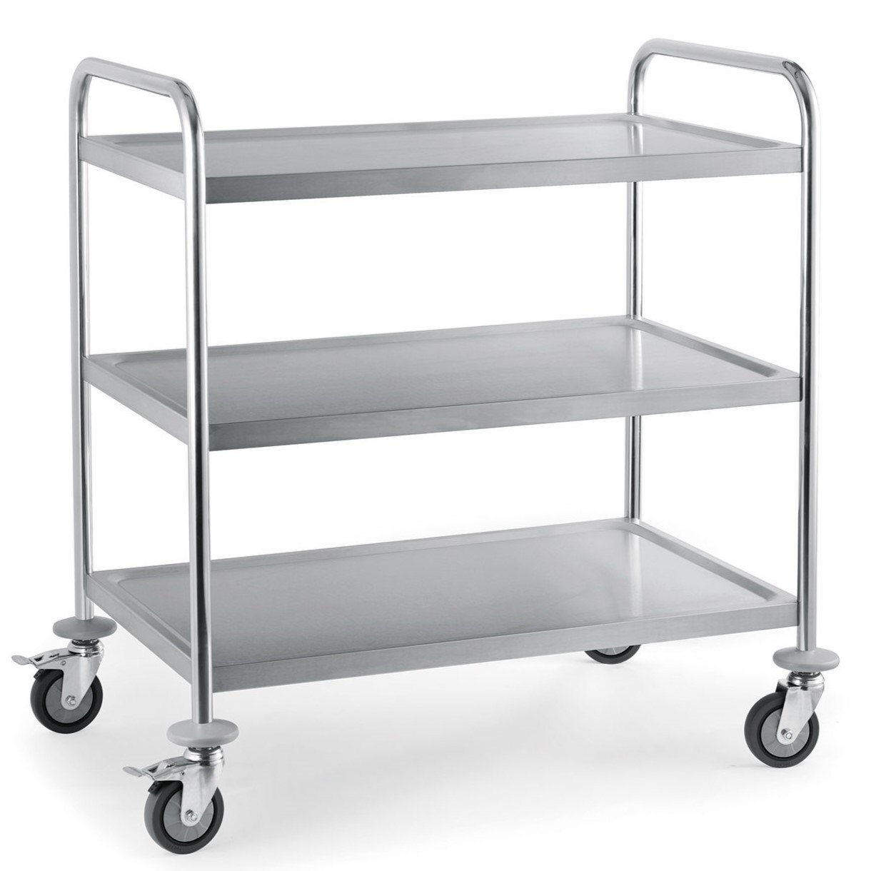 - Konfigurasi Rak 3 Susun untuk Efisiensi Maksimal. Fitur unggulan dari produk ini adalah ketersediaan tiga tingkatan rak penyimpanan. Penambahan rak ketiga secara vertikal memberikan ruang ekstra yang sangat luas tanpa menambah luas lantai yang digunakan oleh unit tersebut. Konfigurasi 3 susun memungkinkan Anda untuk melakukan manajemen distribusi barang yang lebih teratur. Hal ini meningkatkan produktivitas staf secara signifikan karena mereka dapat mengangkut lebih banyak barang dalam satu kali perjalanan. Selain itu, sistem rak bertingkat ini sangat membantu saat proses pembersihan meja, di mana volume barang yang diangkut menjadi jauh lebih banyak.